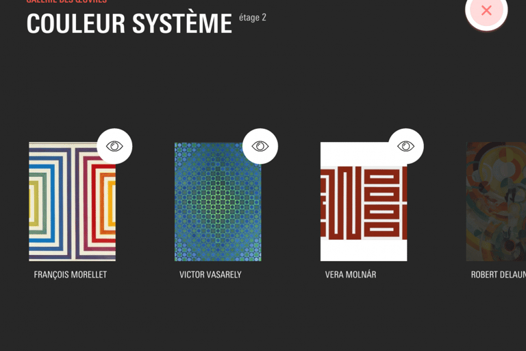 Après un premier niveau d’introduction, 6 univers de jeu donnent à explorer une sélection de 40 œuvres emblématiques de la collection du Centre Pompidou, à travers les relations entre couleur et fonction, couleur et émotion, ou encore lumière et immersion.